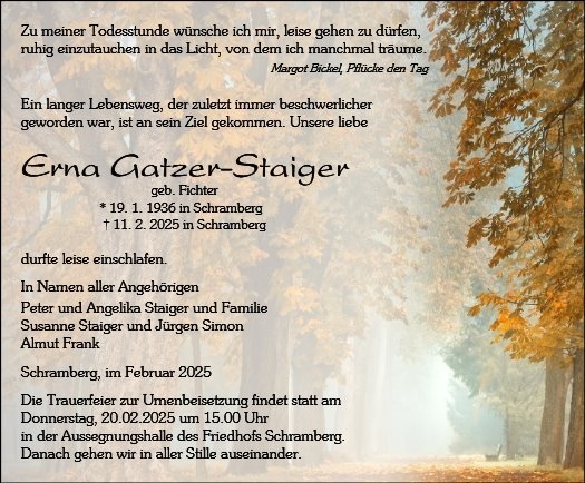 Lesen Sie hier die Anzeigen und Trauerpost!