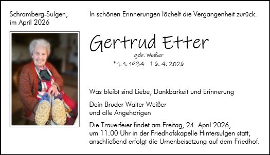 Lesen Sie hier die Anzeigen und Trauerpost!