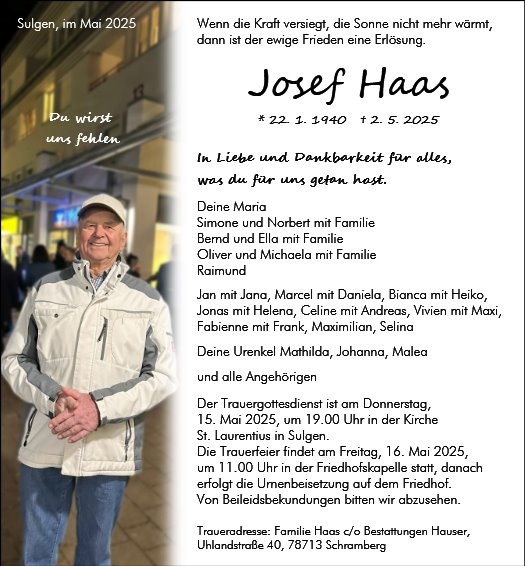 gestorben am 2. Mai 2025 in Schramberg-Sulgen