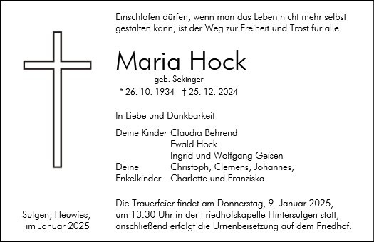 gestorben am 25. Dezember 2024 in Schramberg-Sulgen