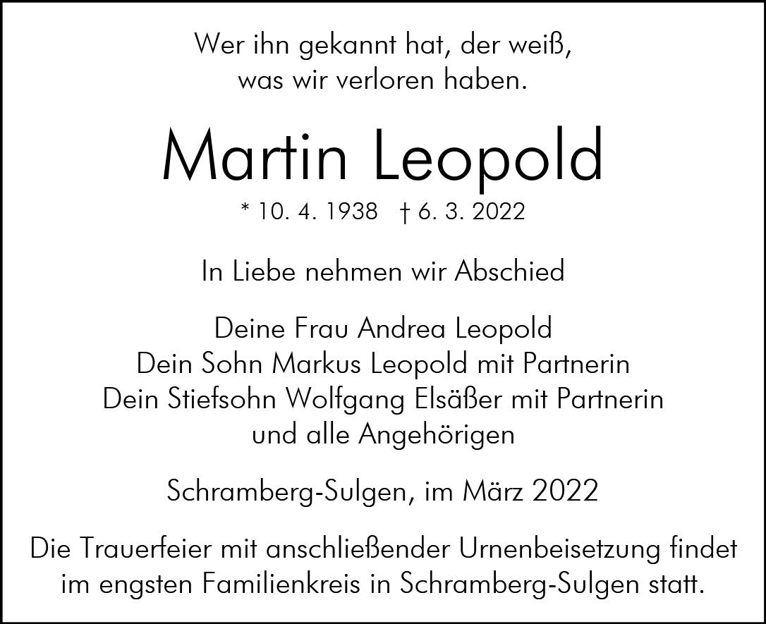 Martin Leopoldgestorben am 6. März 2022