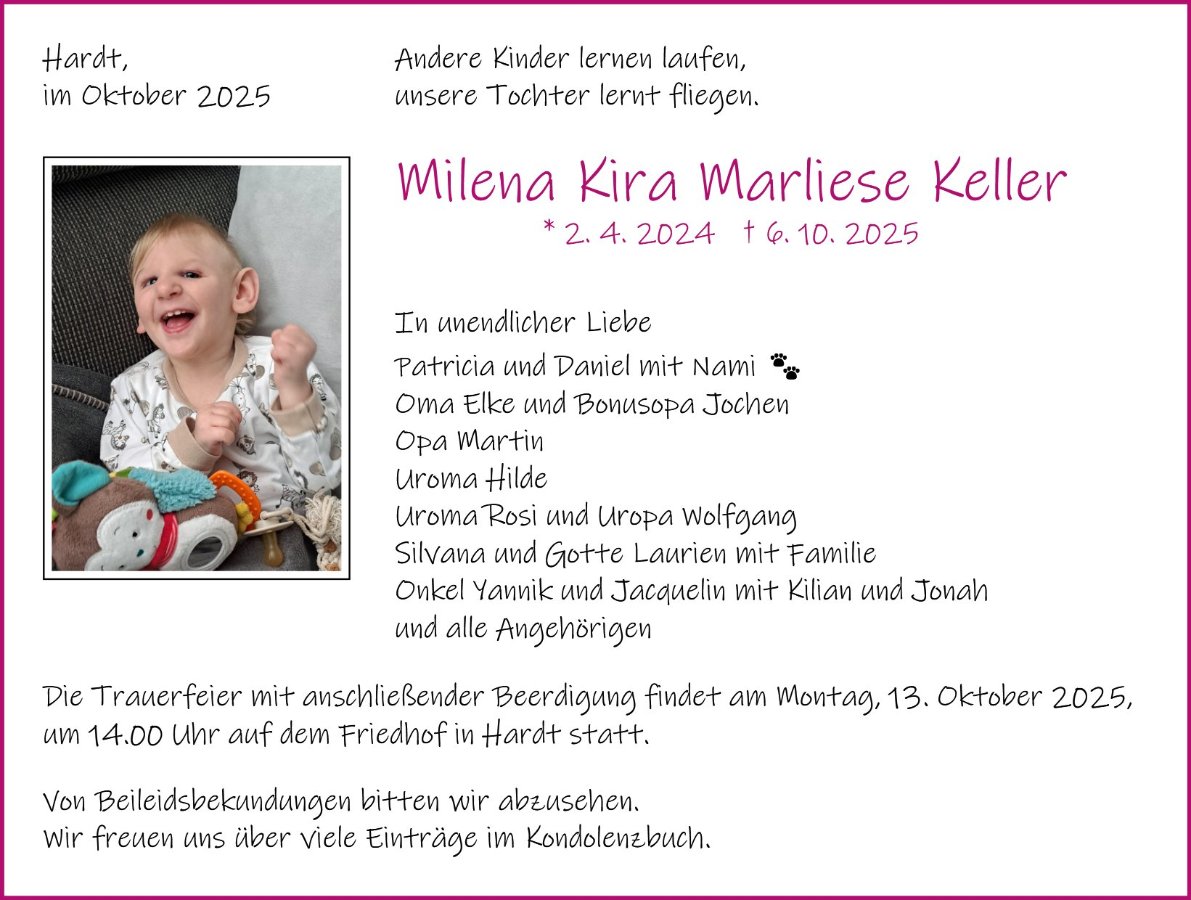 Milena Kellergestorben am 6. Oktober 2025